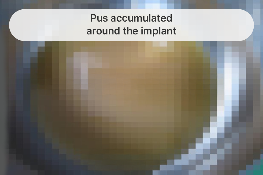 the implant, capsule, pus, and damaged