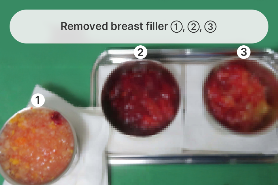 We removed the breast filler along with inflamed tissue, damaged tissue, and hematoma.