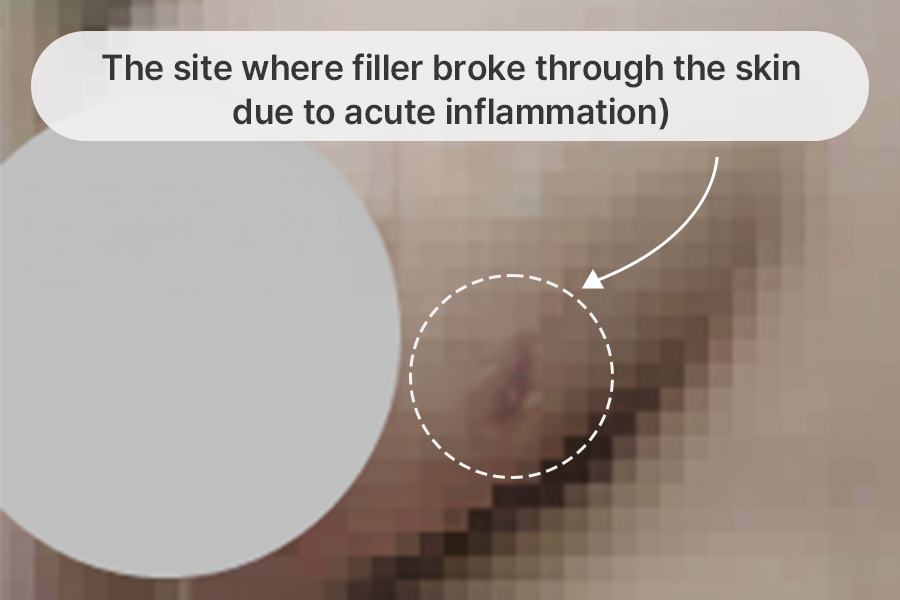 Patient with filler flowing out through