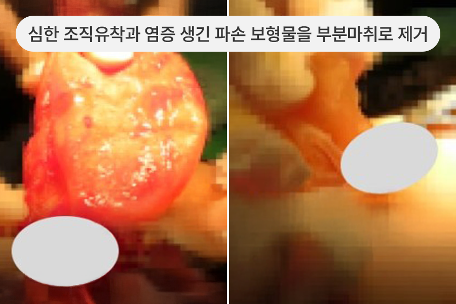 심한 유착과 염증 생긴, 파손 보형물 제거