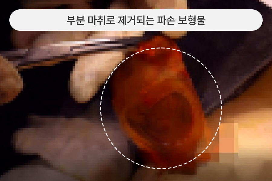 파손으로, 부분마취 하에 보형물 제거 뒤