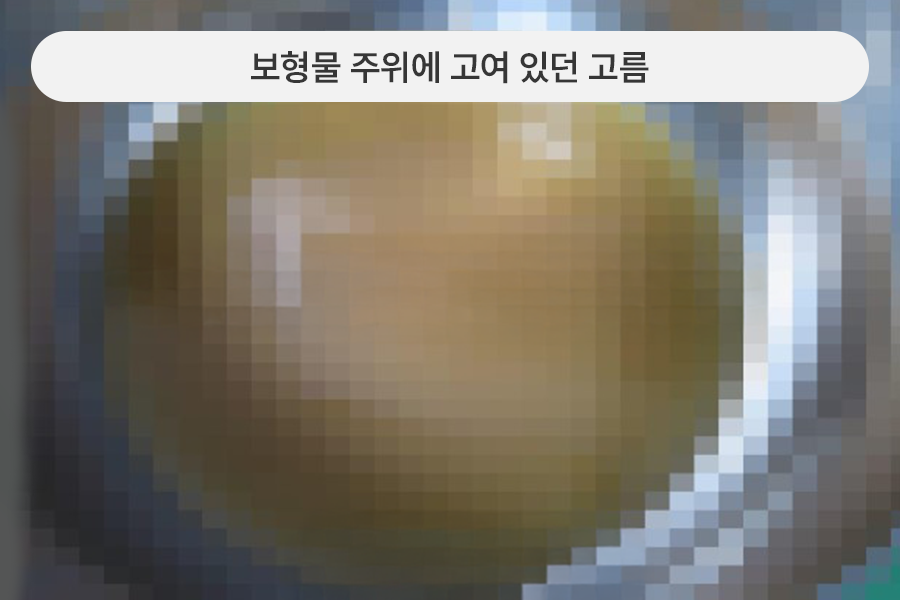 생리식염수백 보형물이 파손된 지 오래 지난 상태로