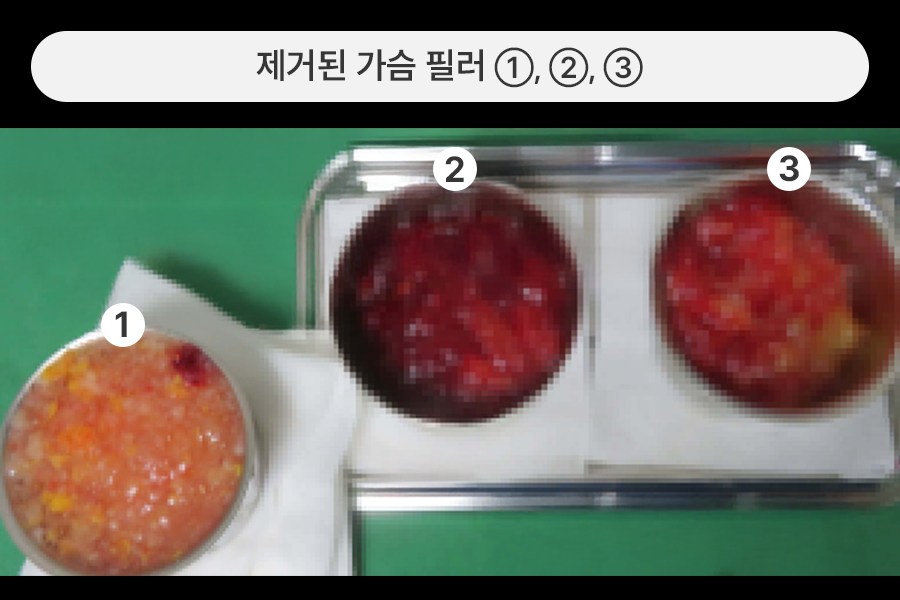 오신 경우로, 가슴필러 제거와 손상조직, 혈종,