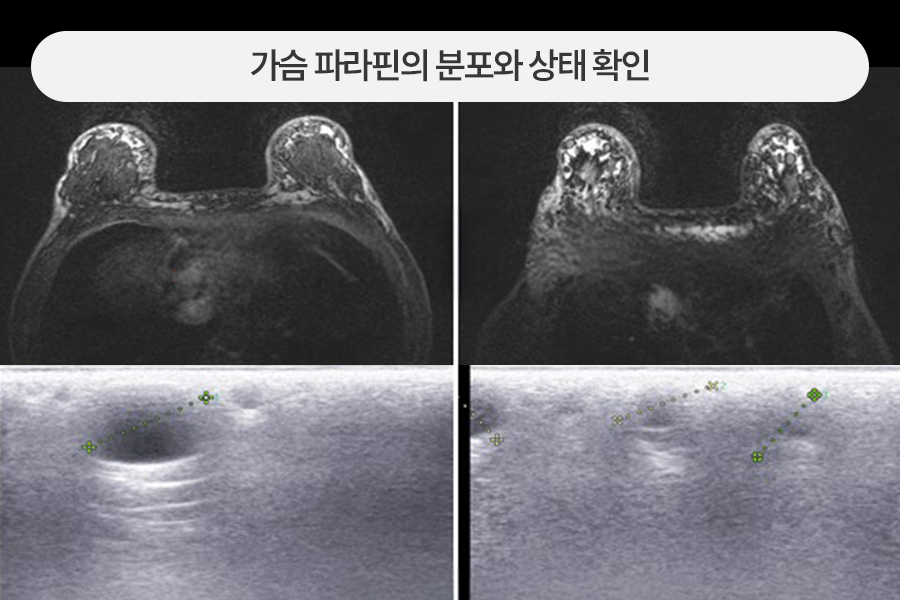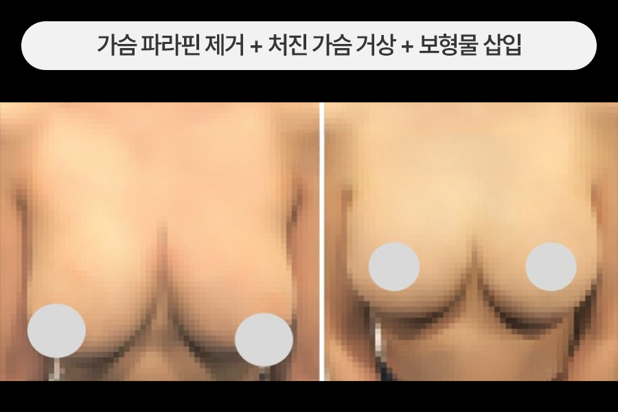 유방 파라핀 제거와 가슴거상, 보형물 확대를 같이 한 경우