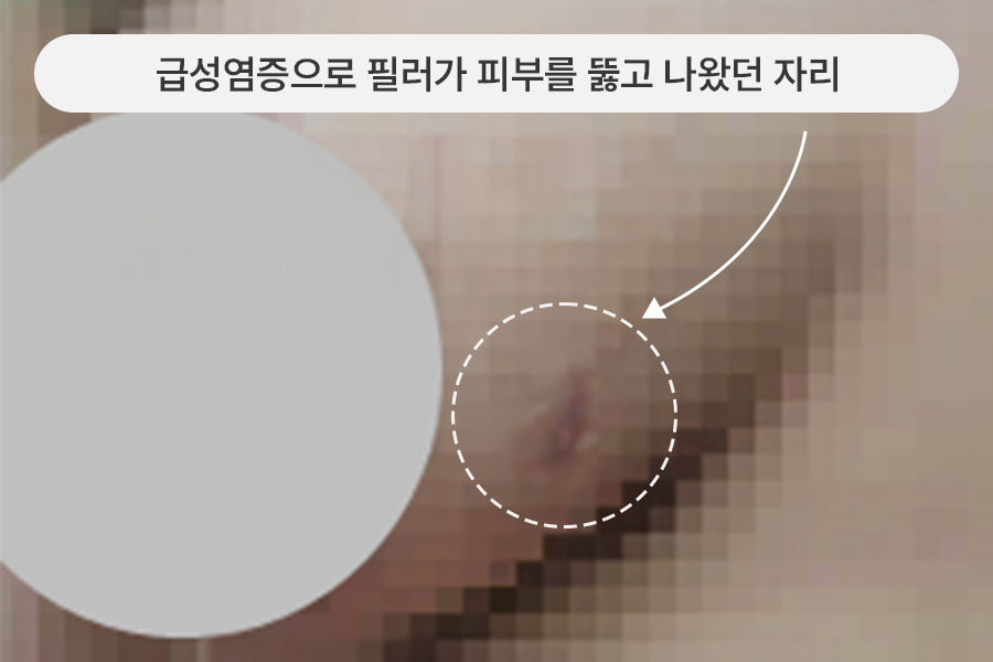 가슴필러 급성염증으로 필러가 피부를 뚫고 흘러나온 분
