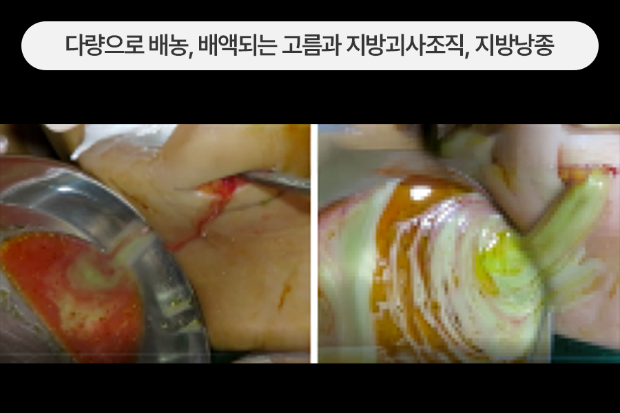 유방 내부에 큰 농양(고름집)이 형성된 상태였습니다.