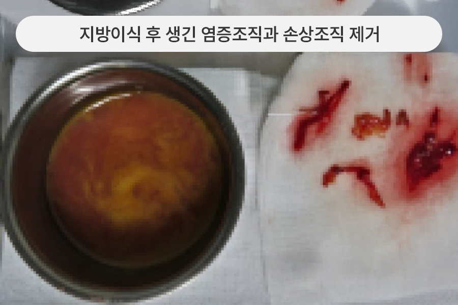 이런 경우는 보통의 지방이식부작용 치료에 비해 절개가 커지고 1~2주 정도 배액관 거치가 필요할 수 있습니다.