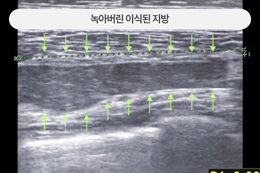 초음파와 내시경 등 영상 장치 가이드 하에 다양한 지방이식 부작용 병변들을 제거하였습니다.